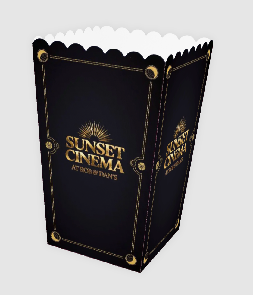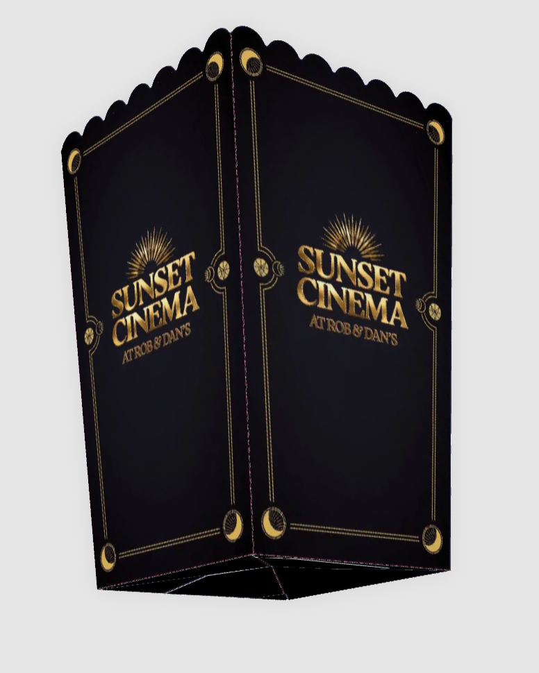 Projection Branding: Integrated preshow animation featuring the Sunset Cinema logo to open every movie night.