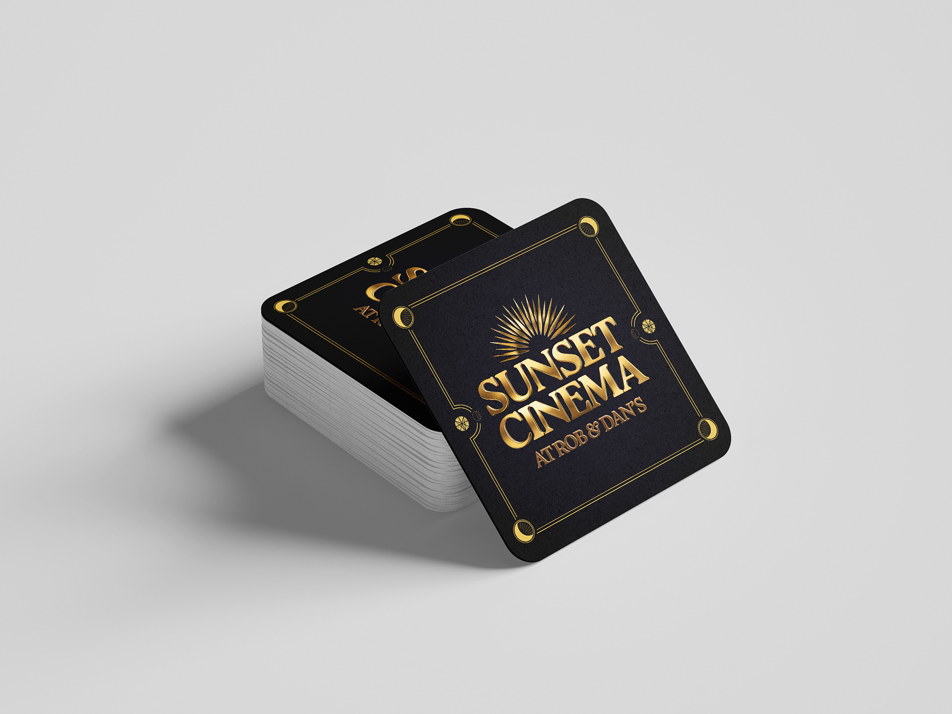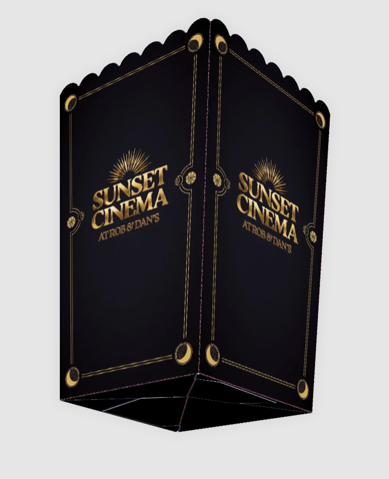 Custom Signage: Subtle brand touches on cushions, coasters, tickets and popcorn boxes.